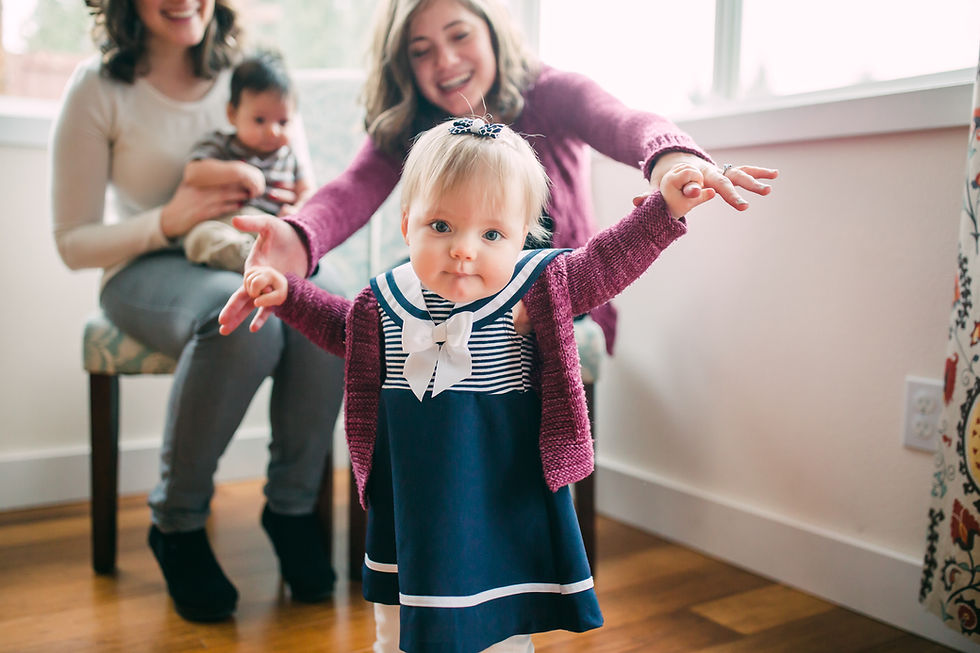 Just as when she learned to crawl, I have had numerous warning about how the difficulty will increase once she is more mobile. "Oh no," they say, "now you are really in trouble!" Once again, however, increased mobility has come with a much improved mood. Walking has made her so much happier! Thinking back to six months ago, it is hard to believe this is the same person as that unhappy, immobile seven month old. Although the toddler stage comes with its own challenges (hello, tantrums) I would not change it for the world! She may have hated being a baby, but she adores being a toddler. She is especially loving communicating through both words and signs (here is her signing more!) , exploring the laws of physics through toys, food and her own movement, and feeding bottles and other objects to her stuffed animals.